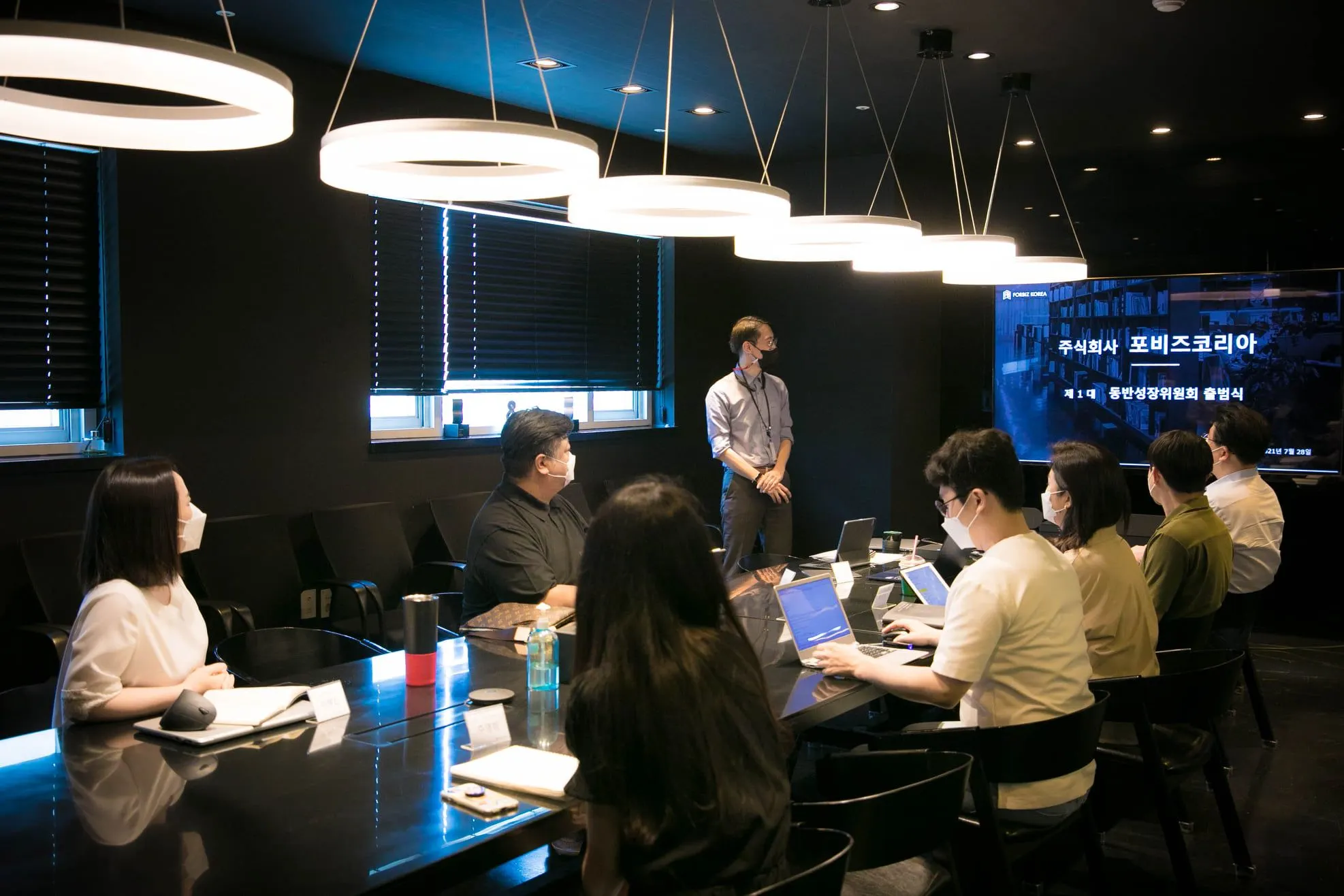 포비즈코리아 동반성장위원회에 임명되신 대표자 분들을 주축으로 회사에서 일하는 모든직원들의 성장과 행복에 기여하기 위해 여러모로 애쓰고 계십니다.